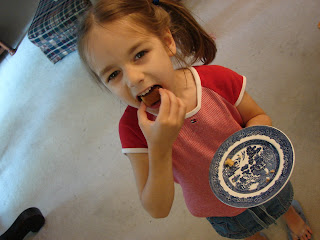 I added some strawberry jam (because the mix wasn't so tasty without it-ha!) and she proudly served us all using one of her little tea set trays.